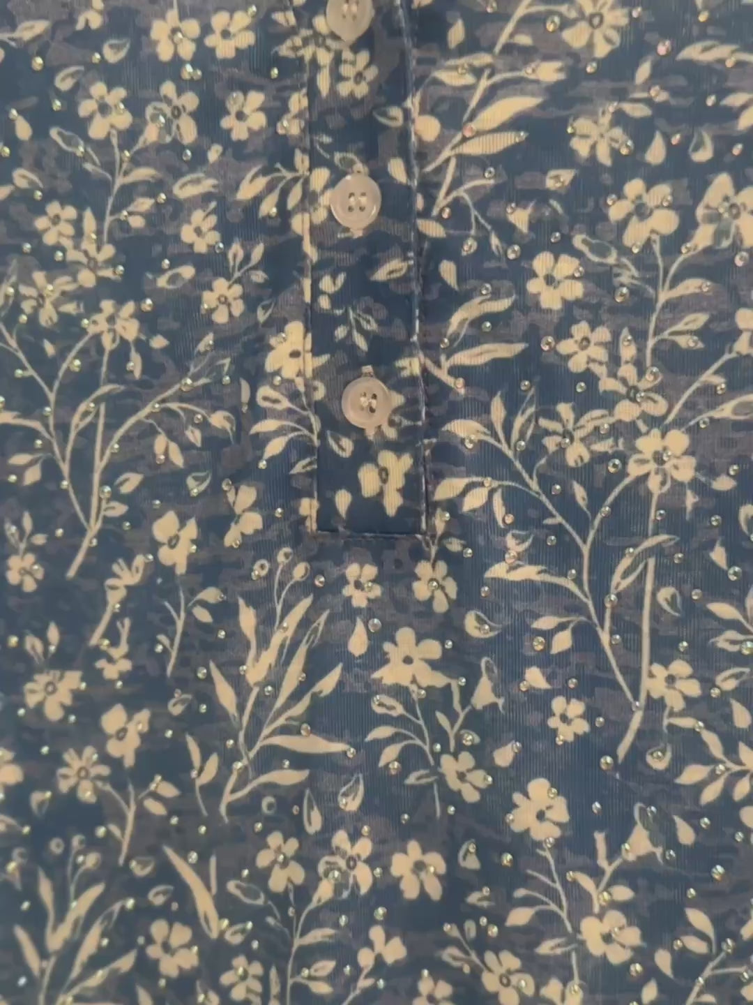 Featuring a blue medallion border print tee! Featuring a blue medallion border print tee!