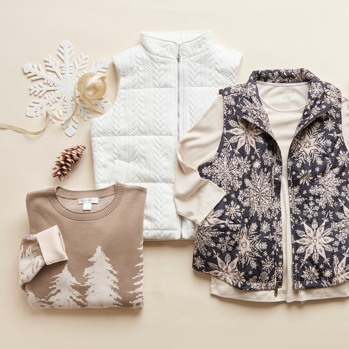 Quilted Snowflake Zip Front Printed Vest