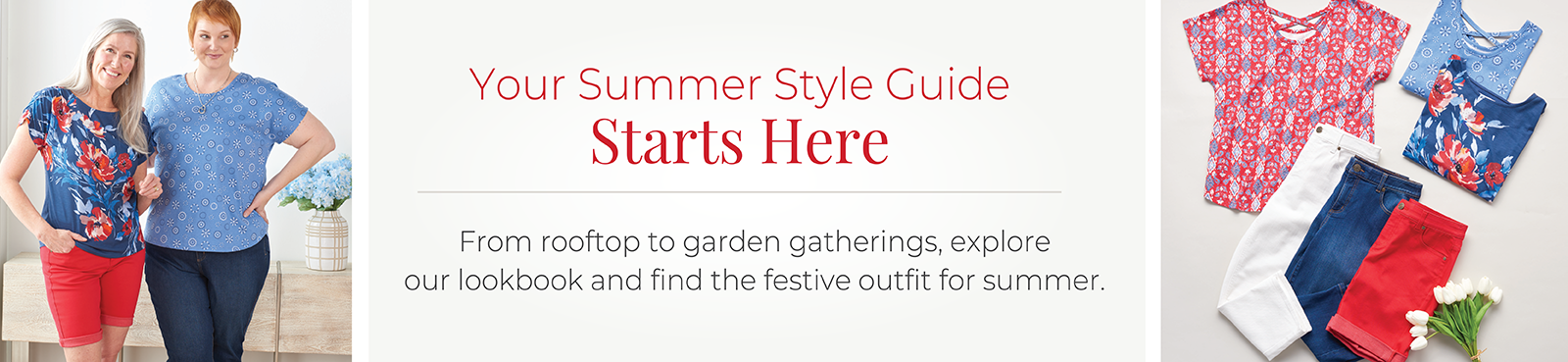 Breathe easy this summer in our laid-back zip front vest, sporty V-neck tee, and comfy seamed front pant—each piece relaxed, restyled, and made to move with you.Relaxed Restyled Zip Front Vest