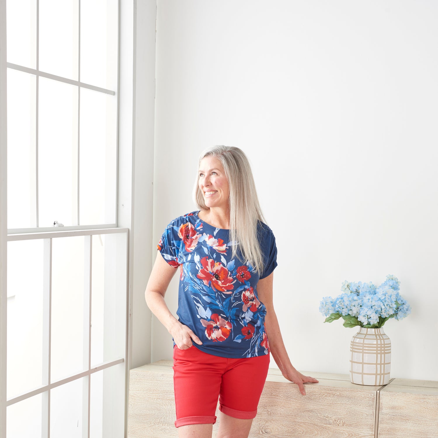 Embrace summer with the perfect blend of elegance and comfort. Our floral print lace inset tee pairs effortlessly with our relaxed fit cropped jeans for a look that’s soft, stylish, and ready for anything.Floral Print Lace Inset Short Sleeve Tee