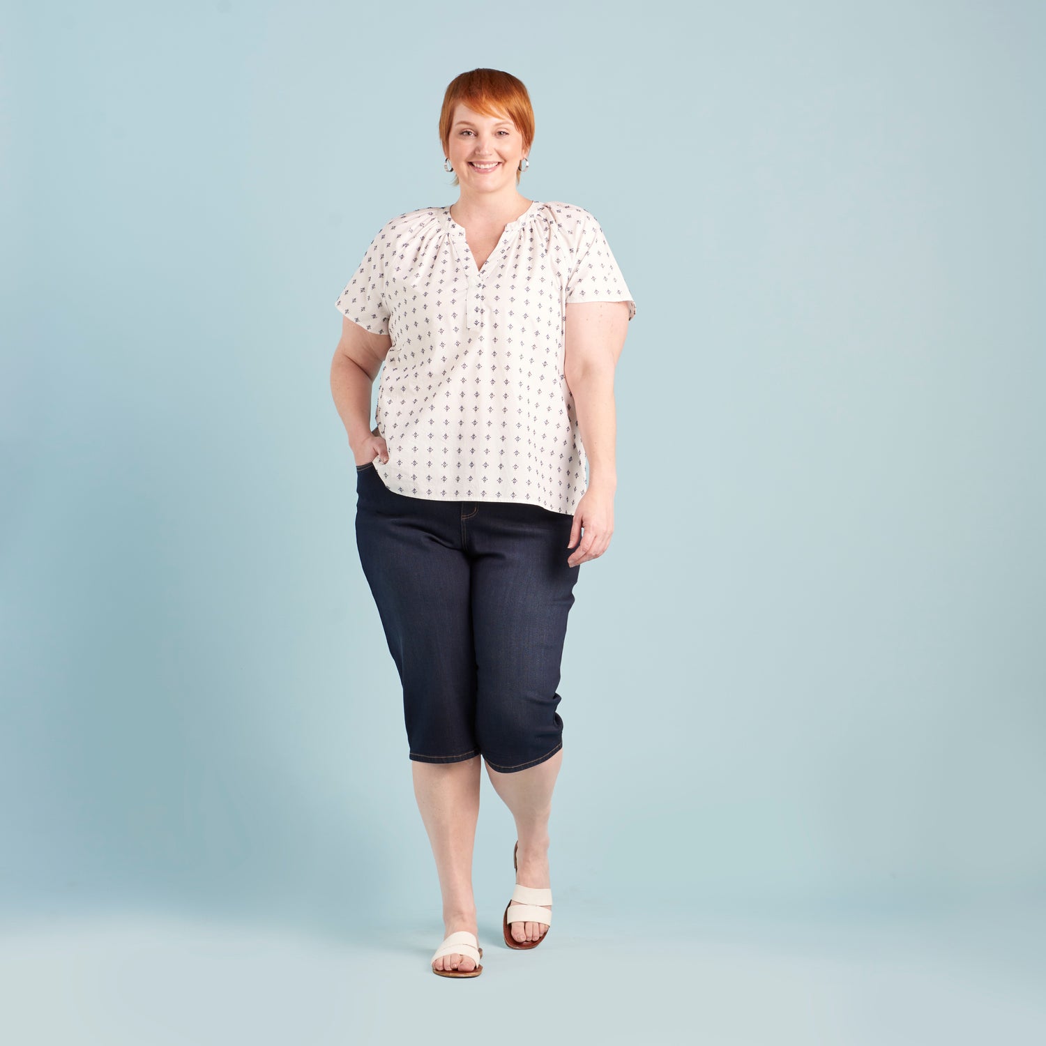 Keep it cool and carefree in our lattice back short sleeve tee paired with relaxed fit denim capris—the perfect match for sun-soaked adventures, easy weekends, and that just-right mix of fun and comfort.Printed Lattice Back Short Sleeve Tee