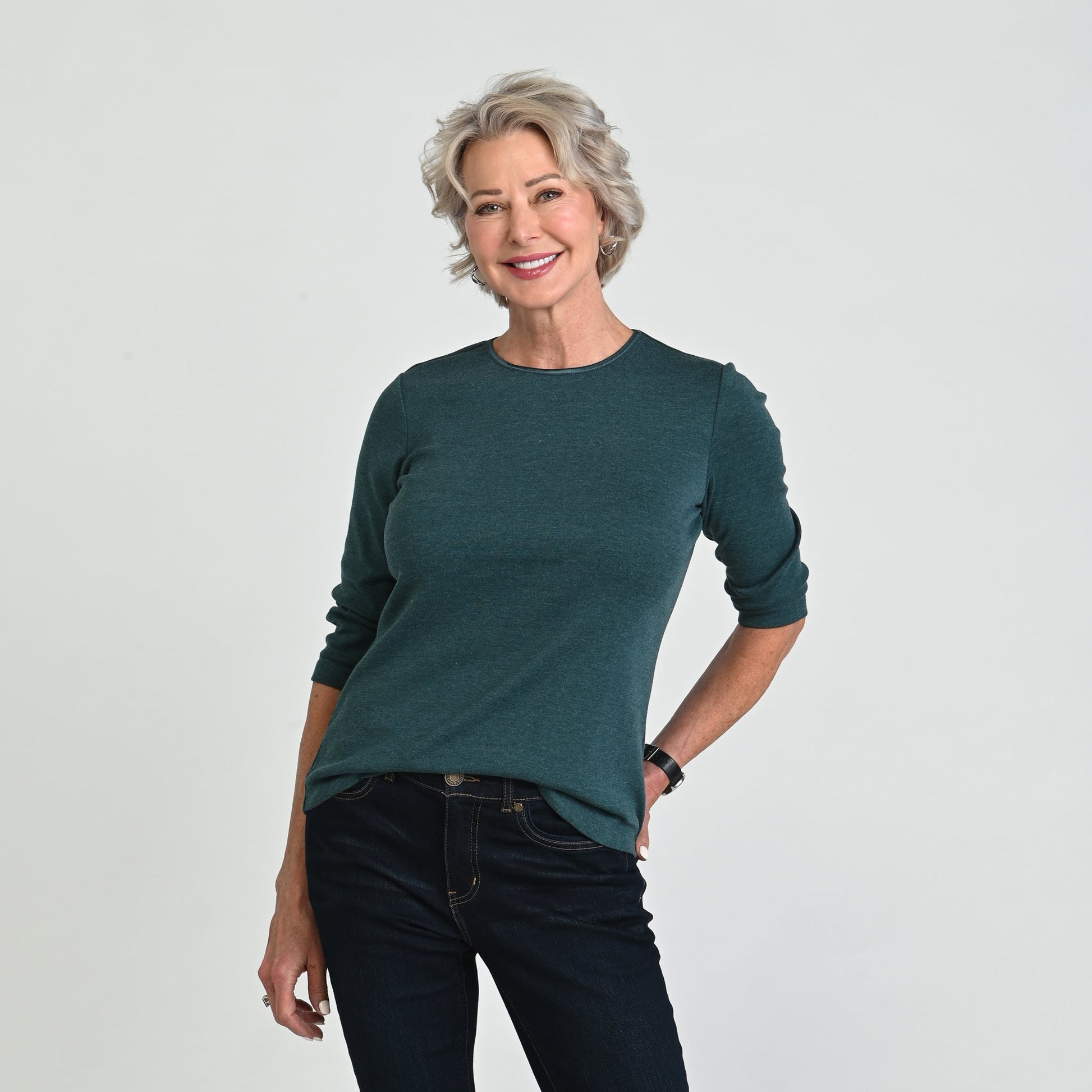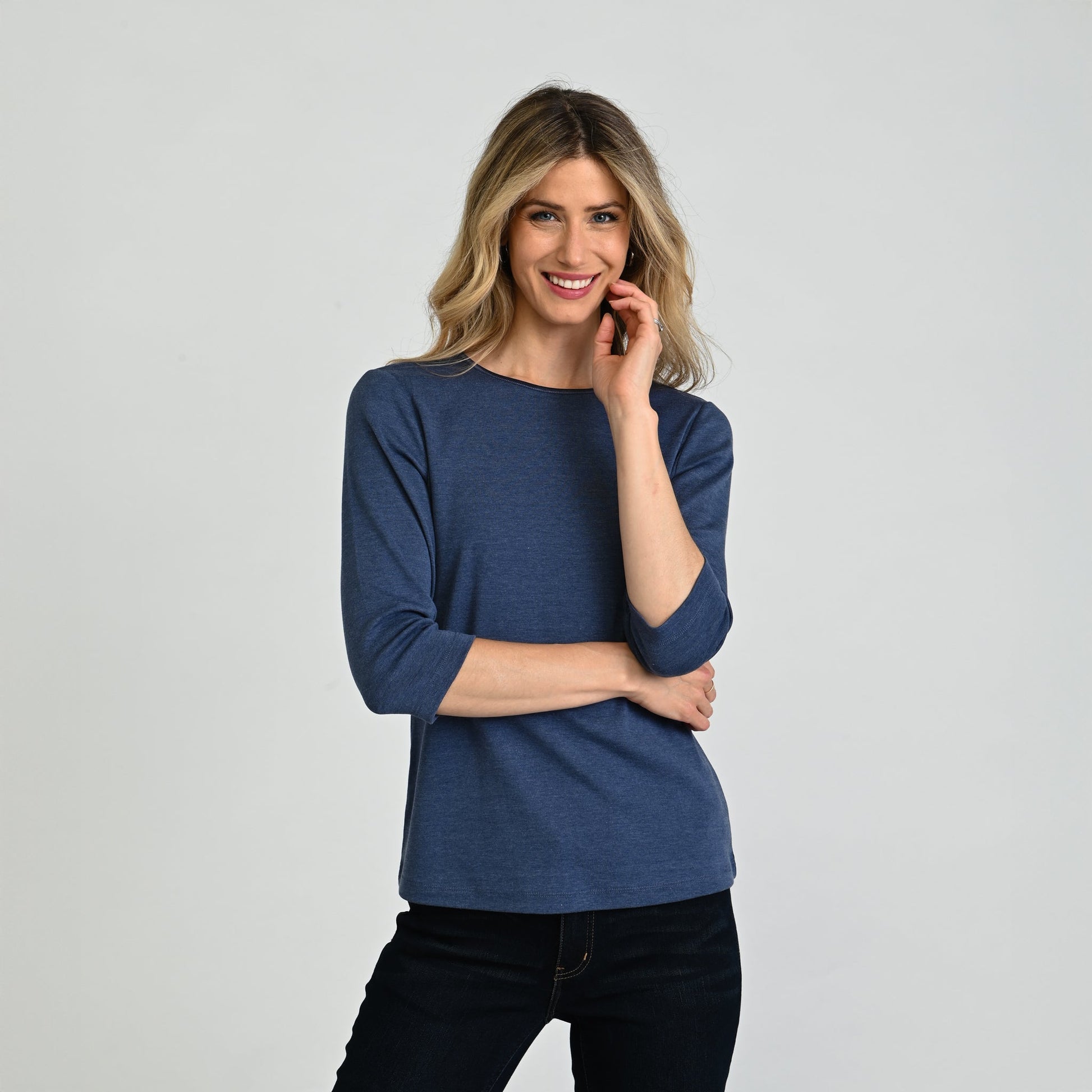 3/4 Sleeve Heathered Satin Trim Missy Perfect Tee