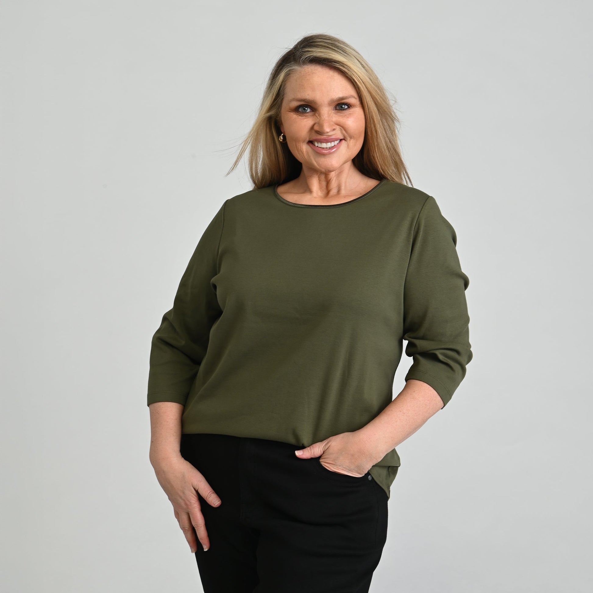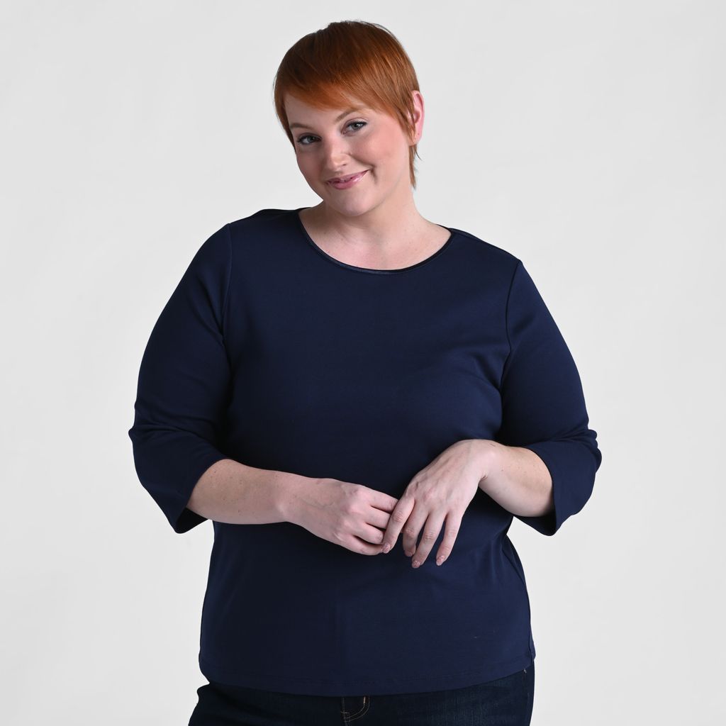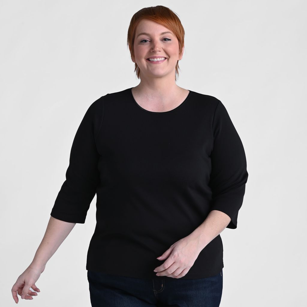 3/4 Sleeve Satin Trim Plus Size Perfect Tee